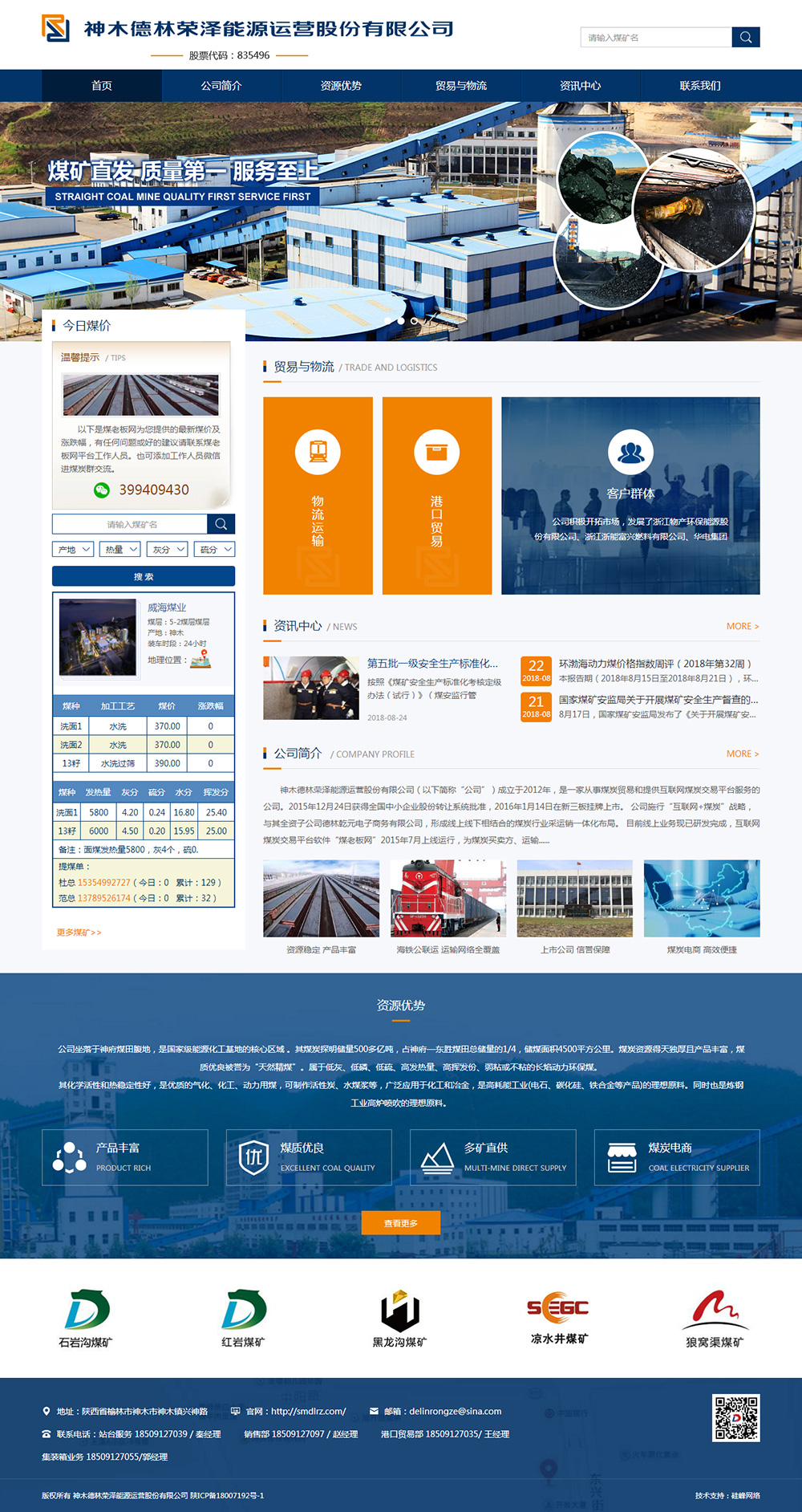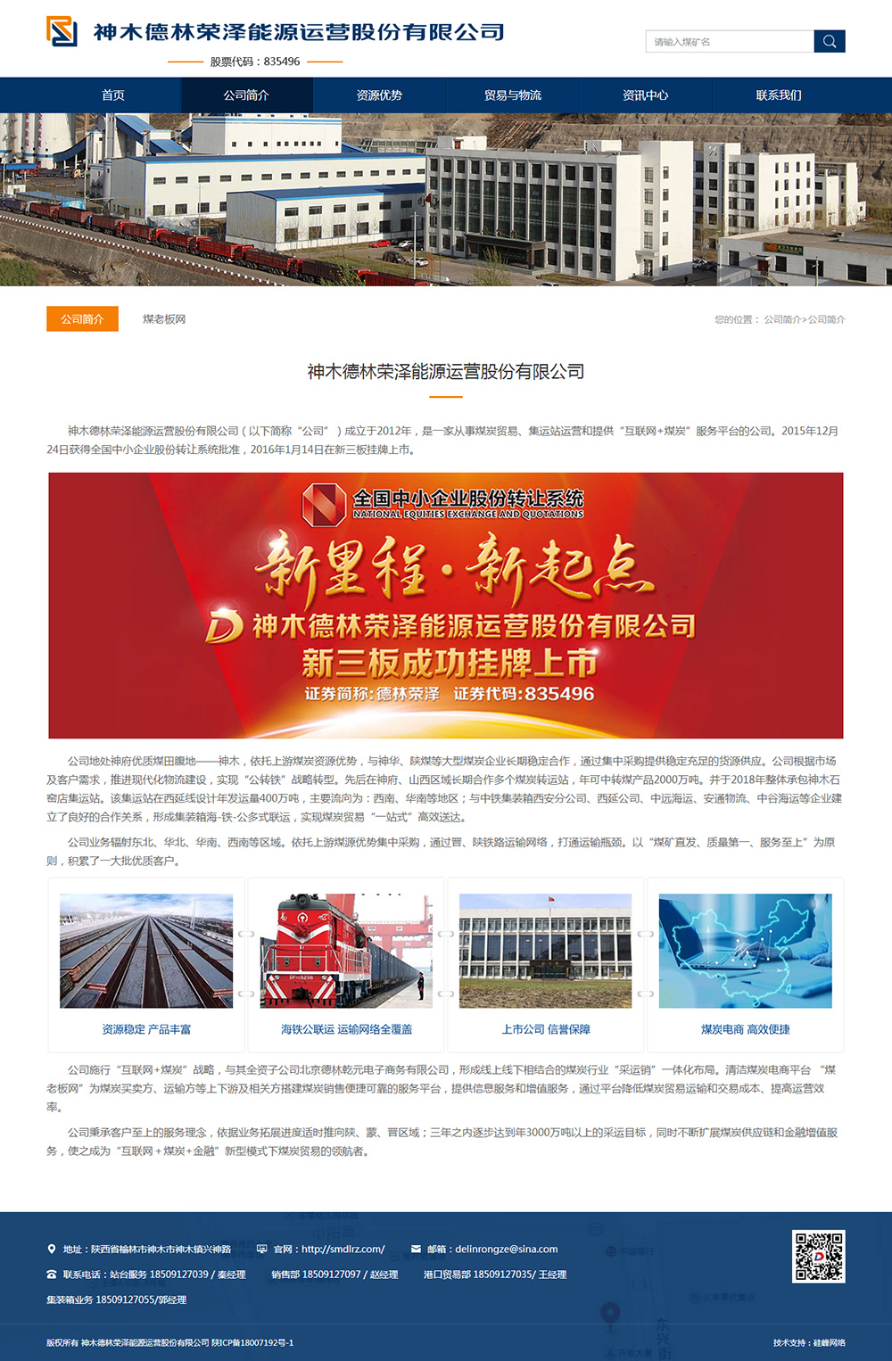 神木德林荣泽能源运营股份有限公司(以下简称“公司”)成立于2012年,是一家从事煤炭贸易、集运站运营和提供“互联网+煤炭”服务平台的公司。2015年12月24日获得全国中小企业股份转让系统批准,2016年1月14日在新三板挂牌上市。公司地处神府优质煤田腹地——神木,依托上游煤炭资源优势,与神华、陕煤等大型煤炭企业长期稳定合作,通过集中采购提供稳定充足的货源供应。