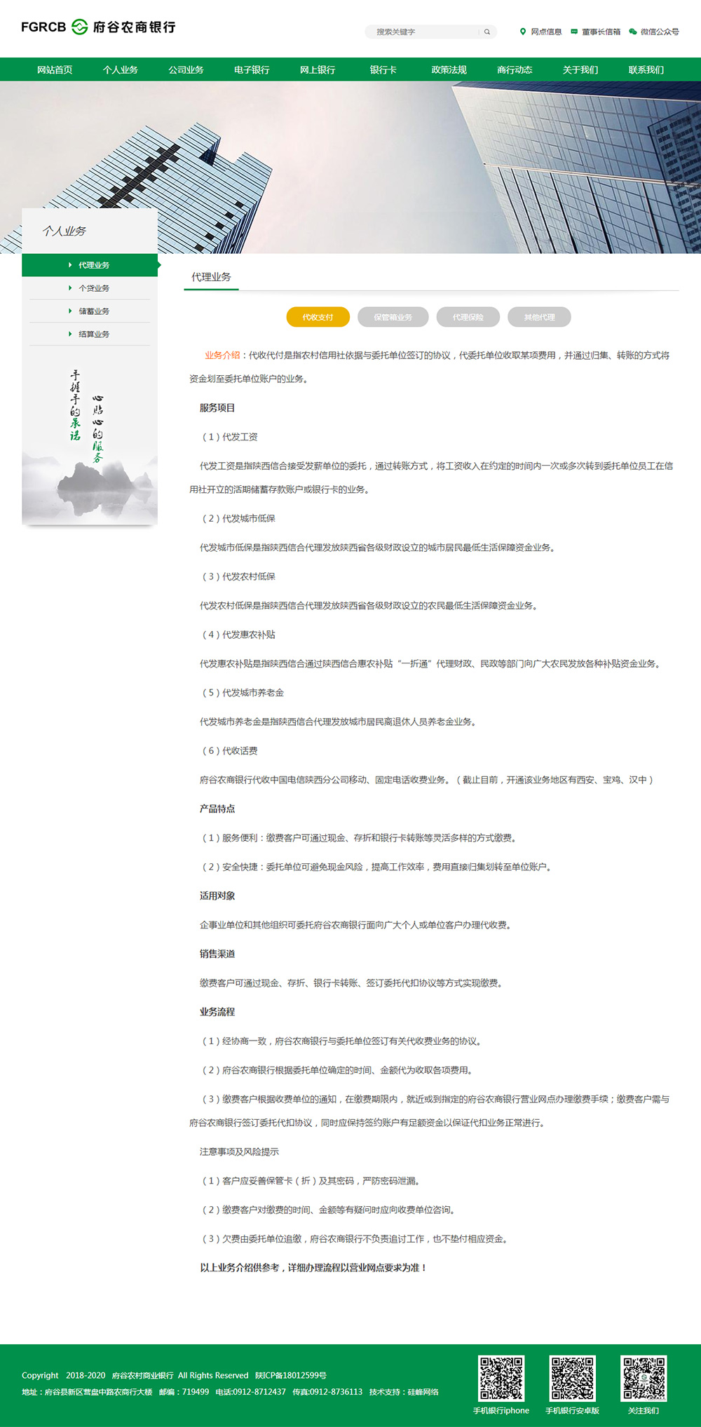 府谷农商银行成立于2012年7月13日,是由原府谷县农村信用社逐步改制组建而成,经中国银监会正式批准成立的股份制商业银行,注册资本5.5亿元,按照股份制的运行体制和风险管控的要求,内设11个职能部门,下辖33家网点,拥有在职员工400余人。