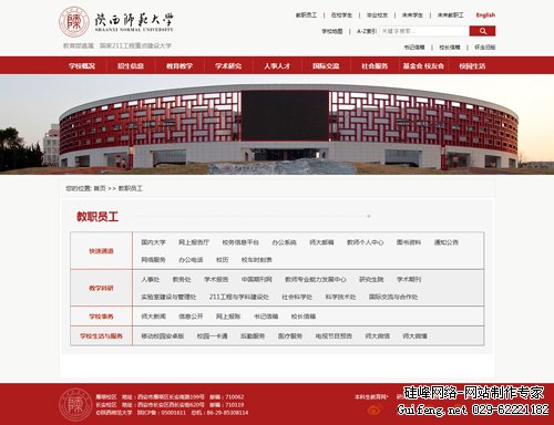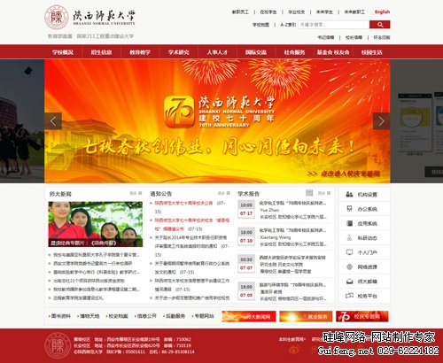 热烈祝贺由硅峰网络设计制作改版的【陕西师范大学】官网上线运行;细节体现完美,服务赢得荣誉,技术开创未来;硅峰网络秉承一贯的精益求精的建站风格,为陕师大及各行业客户提供了网站建设服务,欢迎更多的需要网站制作的客户来选择硅峰网络。