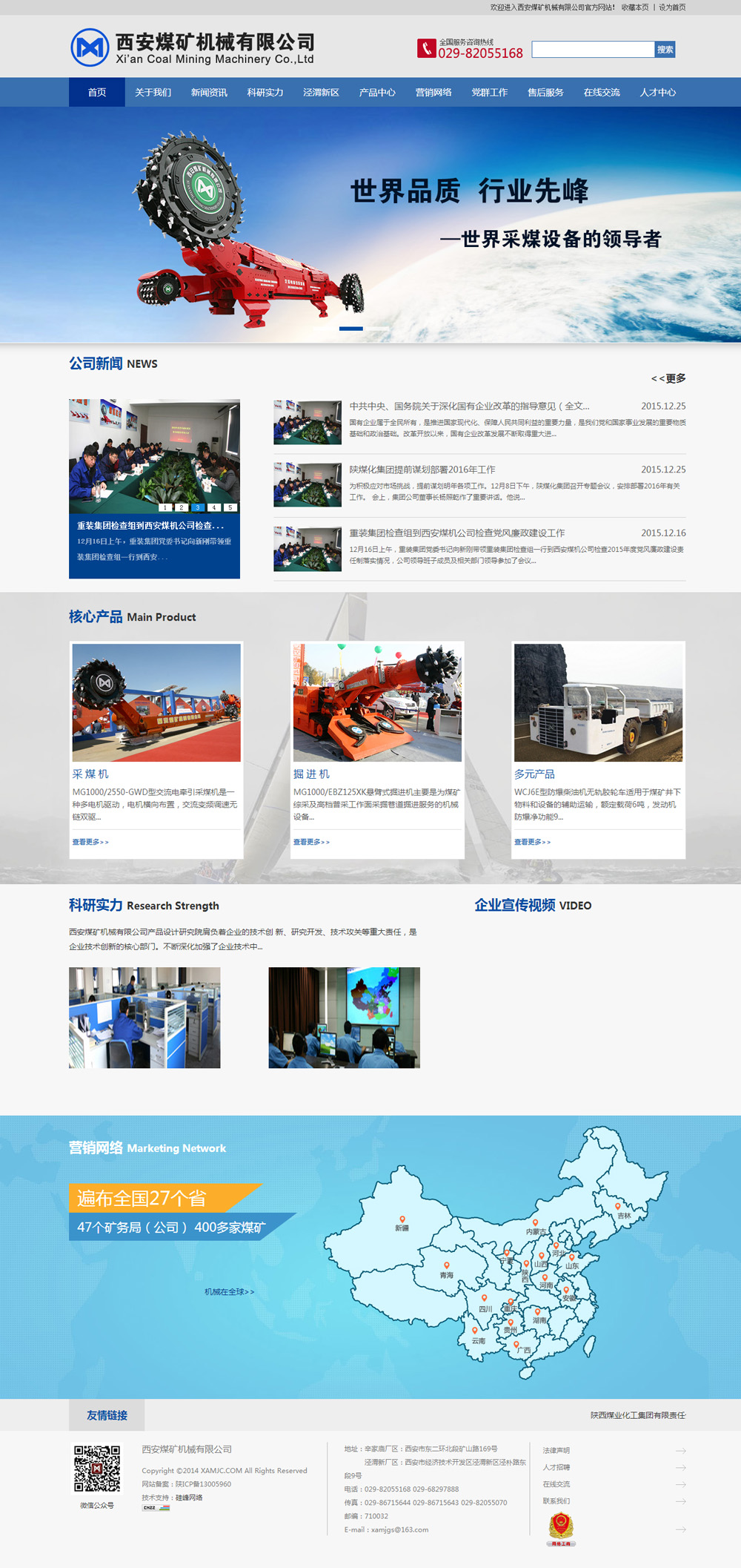 西安煤矿机械有限公司(原西安煤矿机械厂)为原煤炭部采煤机定点生产厂家,是我国采煤机研发设计制造的大型骨干企业。2008年8月,由陕西煤业化工集团与中煤装备公司合作投资对公司进行战略重组,企业实力进一步增强,现已成为以采煤机为主导,掘进机、成套矿井提升运输设备、选煤设备研发、设计、制造、销售为一体的高新技术企业。