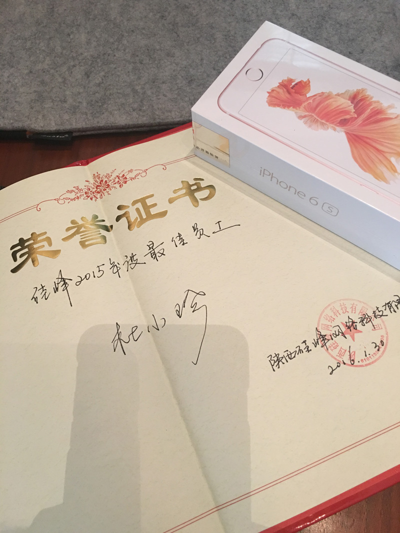 硅峰一年一度的最佳员工经过全员公平、公正、公开的投票,最终我们的技术大伽【杜小珍】以最高票被推选为硅峰2015年度最佳员工,公司奖励iPhone 6S 64G 玫瑰金手机一部;这是同事们对小珍工作的有目共睹之结果;当然,能在硅峰的每个人都是最出色的,只是我们还有上升的空间,期待2016年更出色的自己!