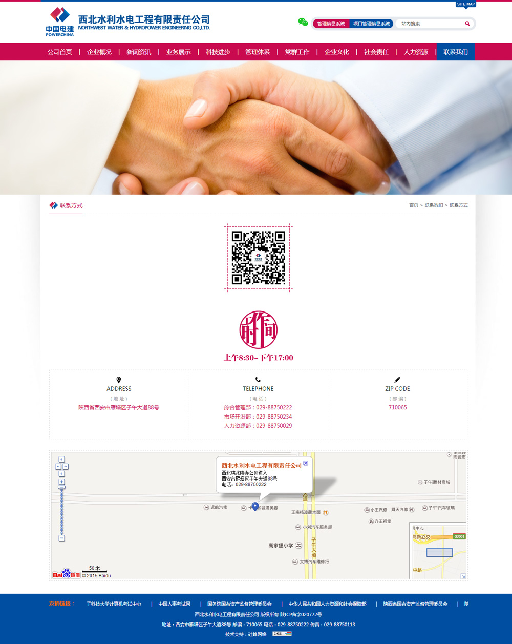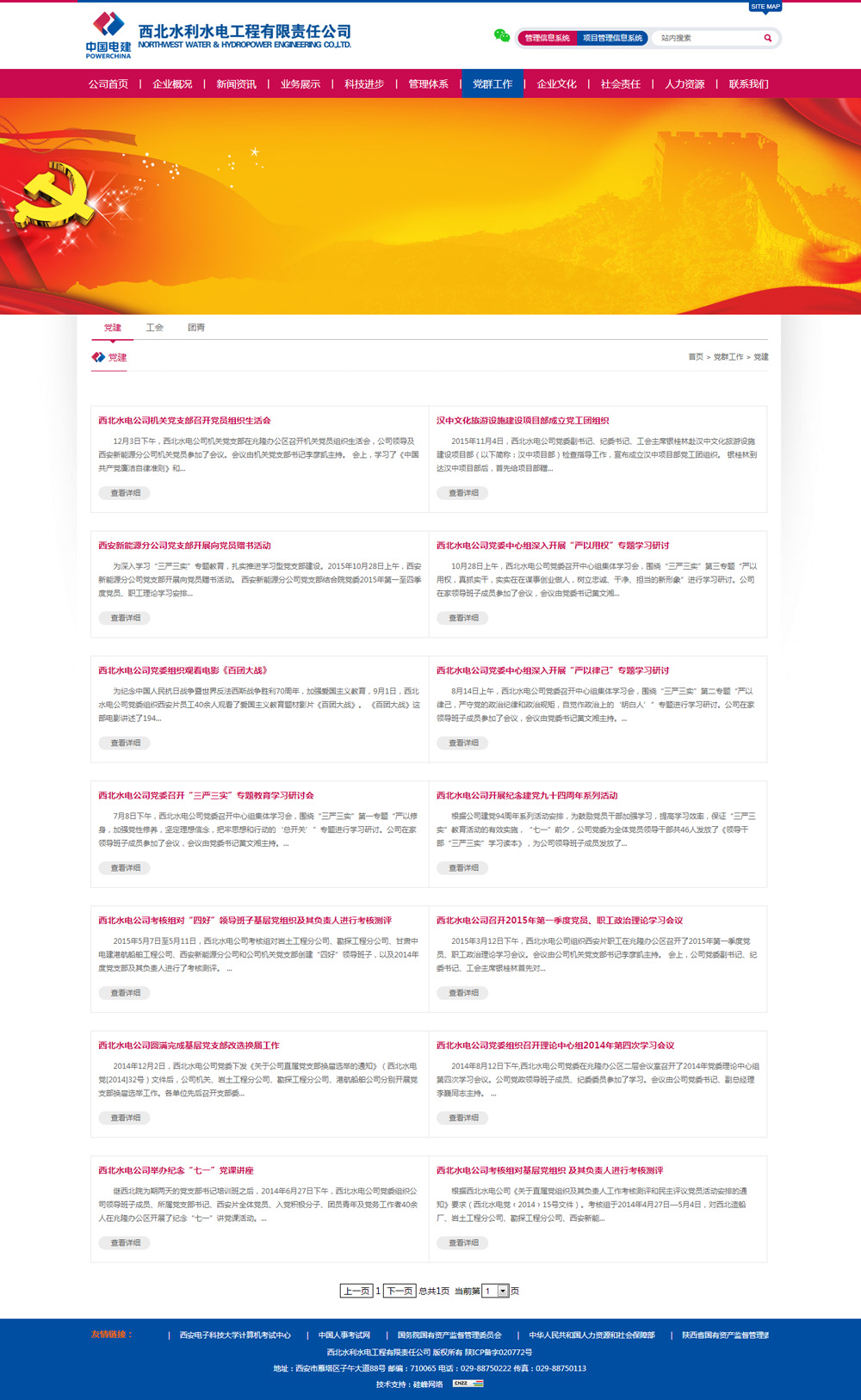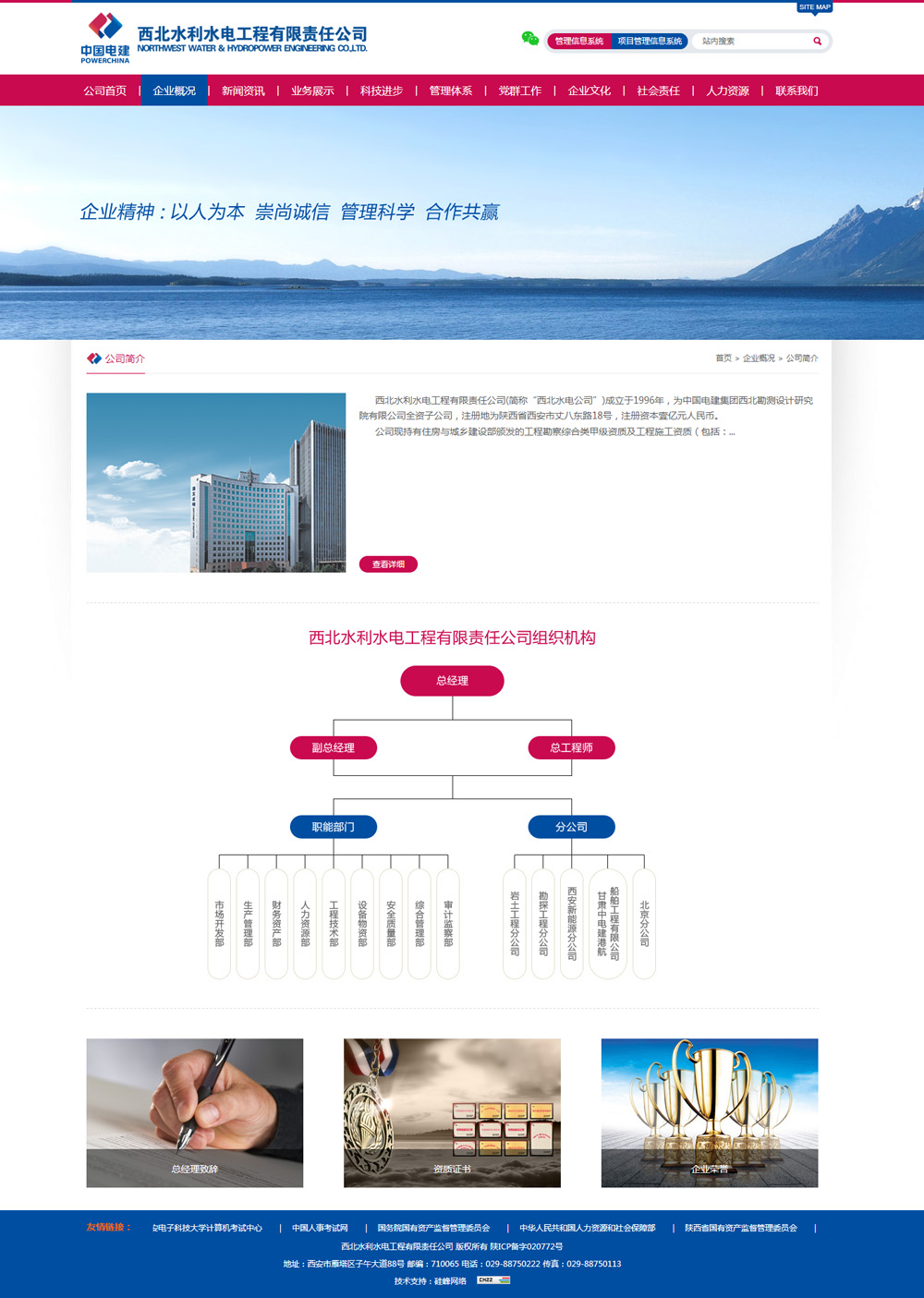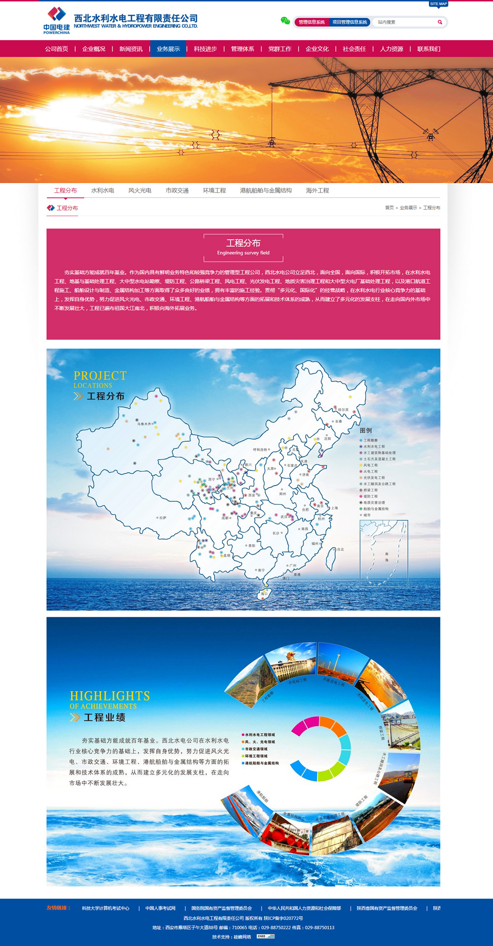 西北水利水电工程有限责任公司(简称“西北水电公司”)成立于1996年,为中国电建集团西北勘测设计研究院(简称“西北院”)有限公司全资子公司,注册资本壹亿元人民币。这也是硅峰网络继西北院官网(www.nwh.cn)、西安光电官网之后为西北院系统设计制作的又一网站力作!请浏览网址查看西北水电公司官网 http://www.xbsdgs.com