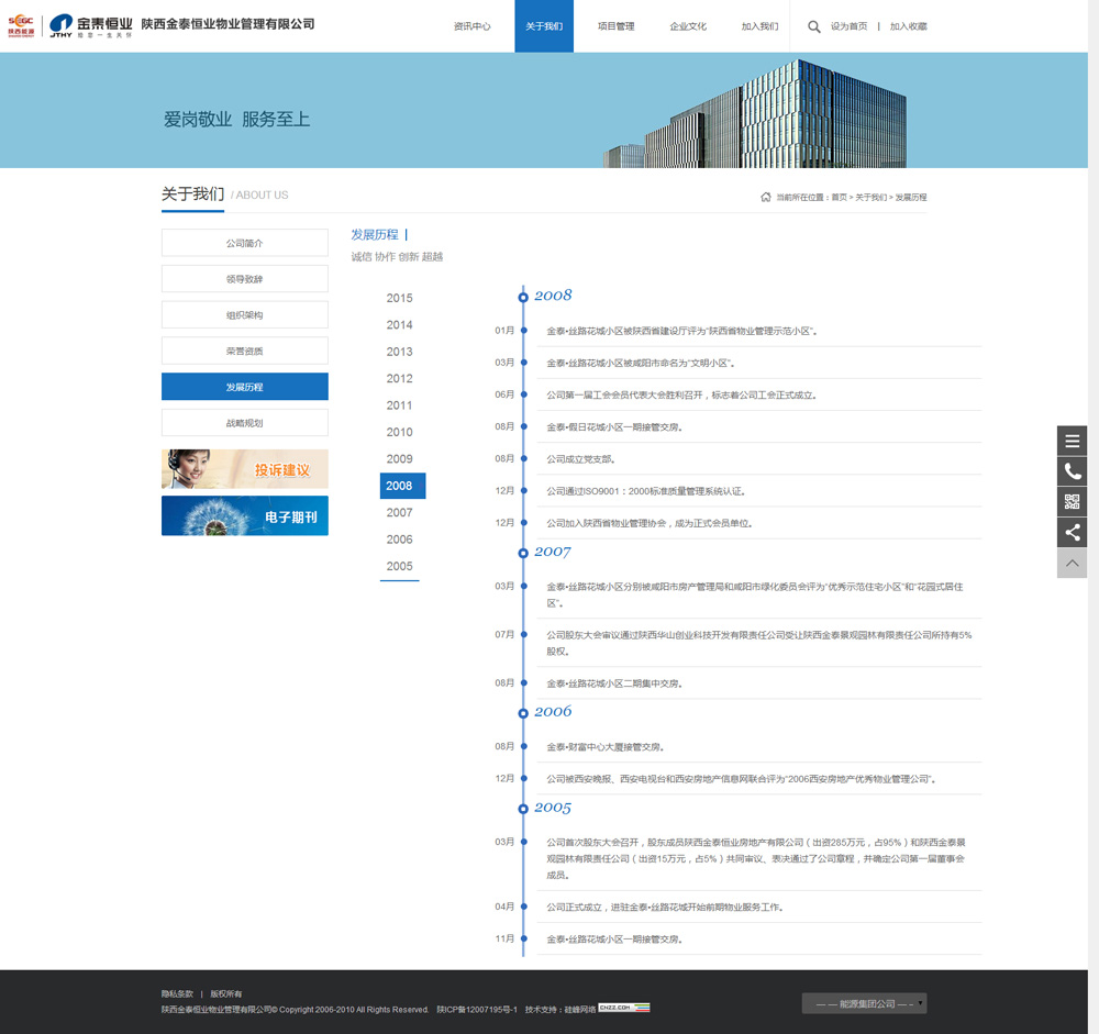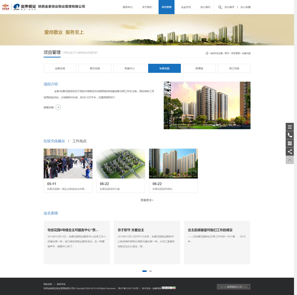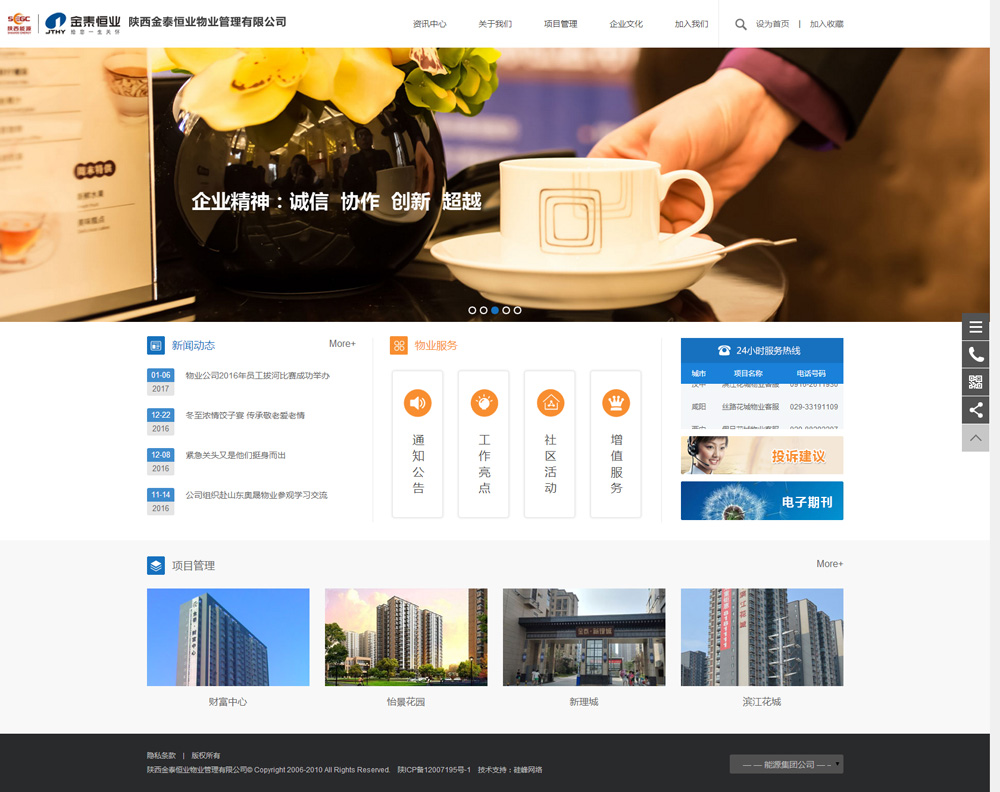 金泰恒业物业公司于2009年第一次选择硅峰网络初次建站,6年来一直保持着良好的合作关系,2016年这次改版后的网站更能体现公司文化及品牌形象,更能为业主提供有效的信息和物业服务。