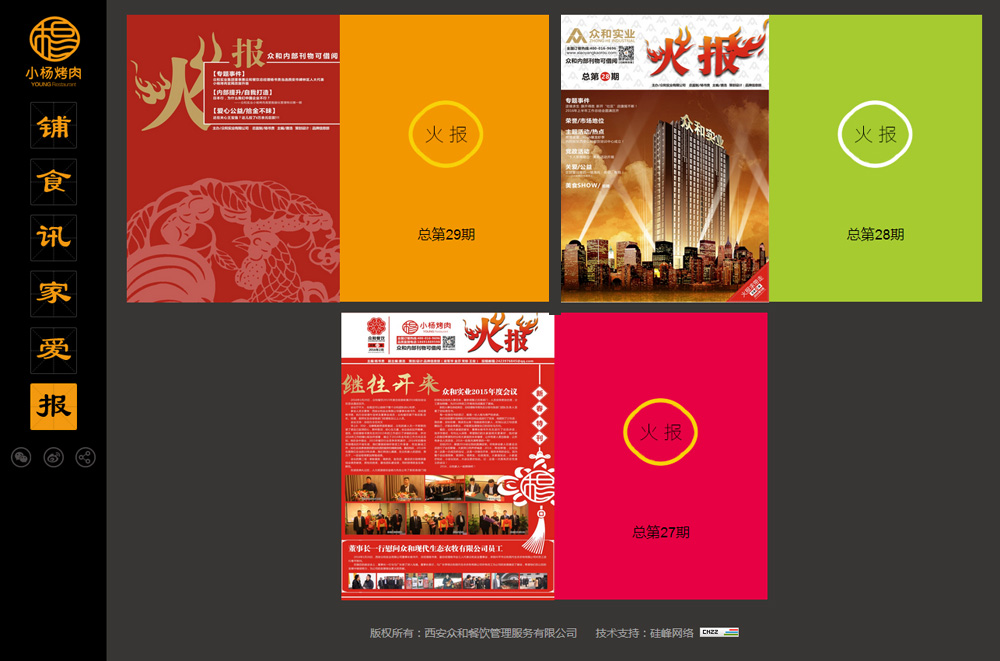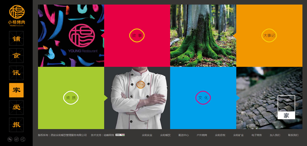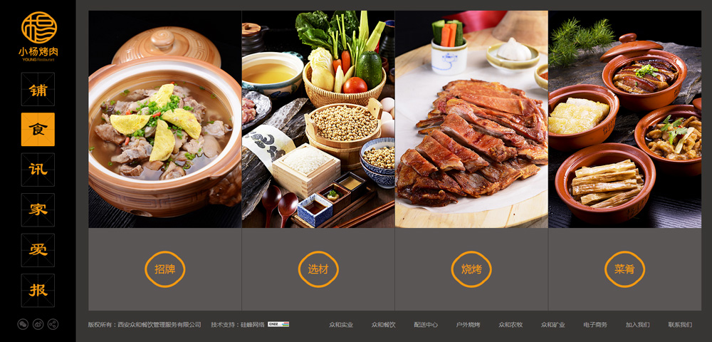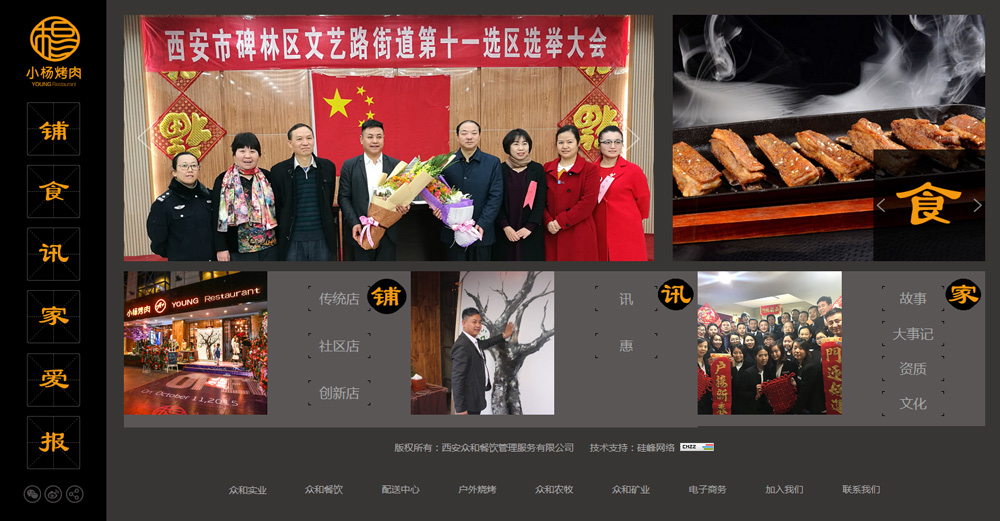 恭贺由硅峰网络承建的陕西知名餐饮品牌【小杨烤肉】企业形象官网新版上线!整站采用原创设计,色彩搭配神秘前卫,挑逗您的味蕾,诱惑您的食欲;定制化的响应式开发又为各设备终端的浏览提供了直观与便捷,真正做到了全网建设;此次改版开启了小杨烤肉视觉识别系统又一全新的征程!
