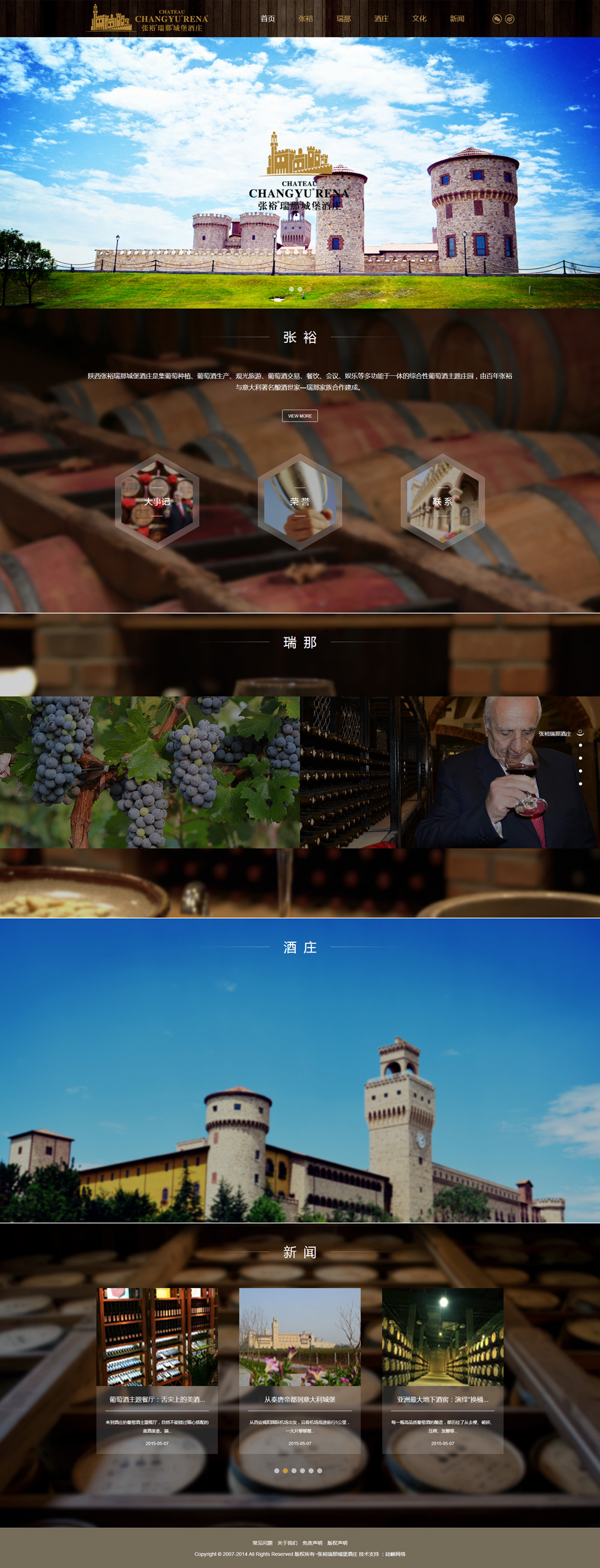 张裕瑞那城堡酒庄于2015年选择硅峰网络为其网站承建商,又于2017年重新改版设计,新版采用扁平化设计,整站响应式开发(自适应任何终端设备浏览),页面设计更具质感,充分体现了酒庄的古朴尊贵的城堡之风采。