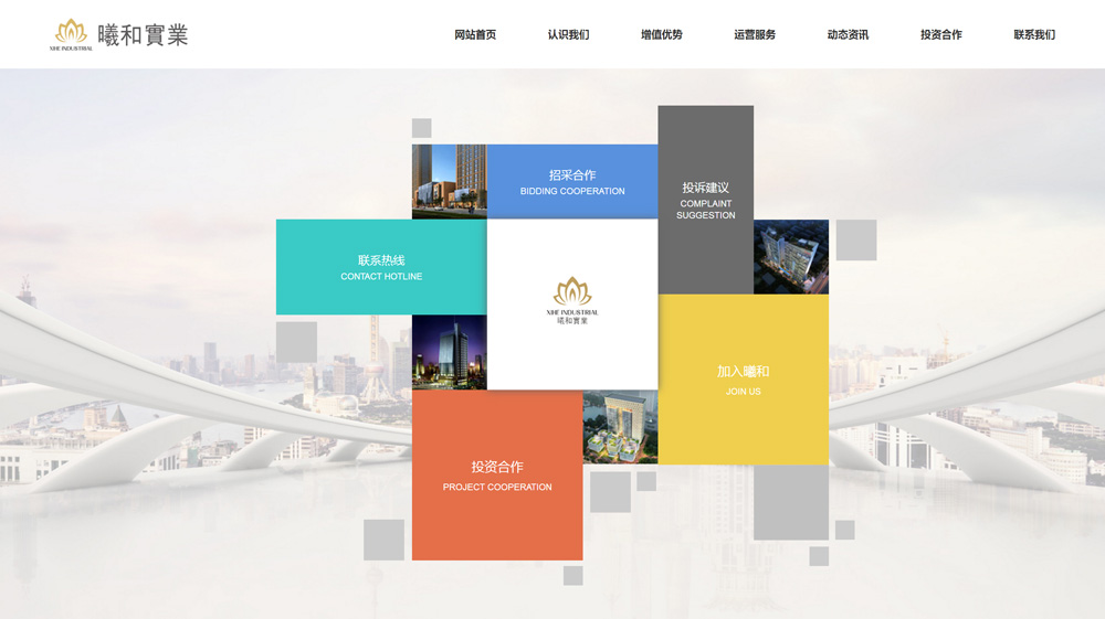 整站响应式制作开发,自动适应电脑手机等任何浏览终端;设计上采用扁平化风格,大胆创新,多处采用色块及图块设计,所有页面整屏切换浏览,突出曦和实业的品牌形象及项目营销。